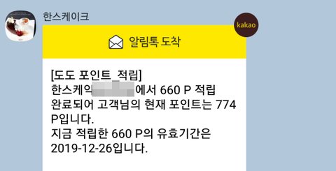 평소 제 번호로 적립하는 버릇을 들였는데카톡으로 적립 내역이 오는 줄 몰랐던거죠.