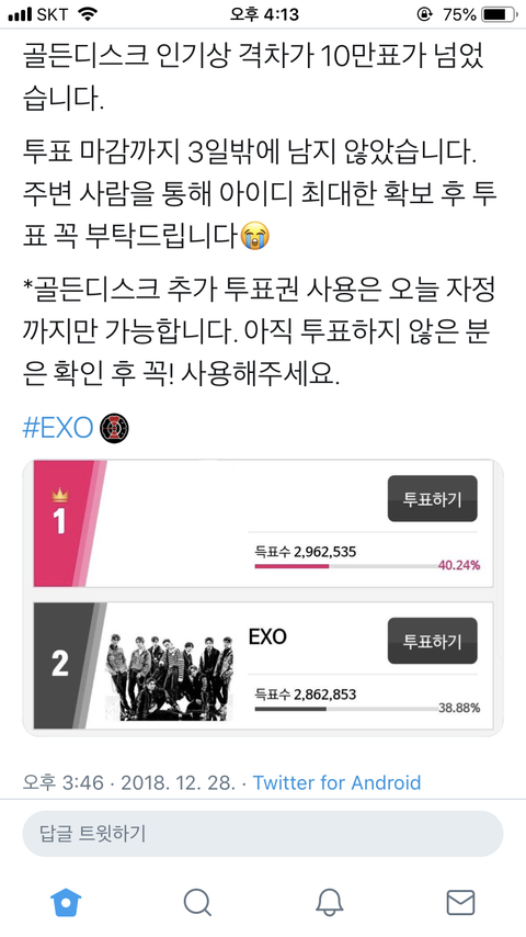 야 꼴디 격차 10만 표임ㅋㅋ 안하냐? 짜증나네