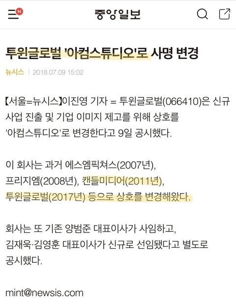 아컴스튜디오는 회사 이름을 캔들 미디어로 바꿨습니다.
