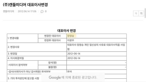그리고 장영승이 이사로 있었던 때 아컴스튜디오는 2012년 대선 문재인 정치테마주인 회사였습니다.