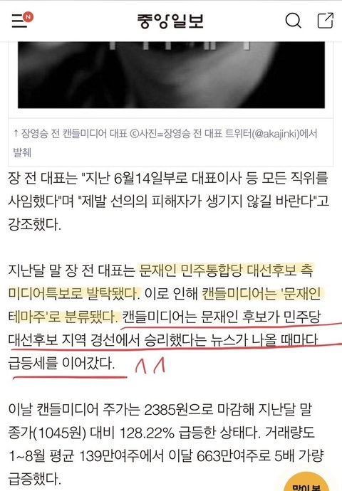 문재인이 대선후보 지역 경선에서 승리했다는 뉴스 나올 때마다 캔들미디어 주가 급등세