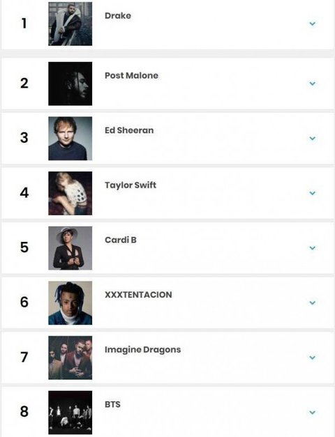 빌보드 선정 2018 아티스트 순위