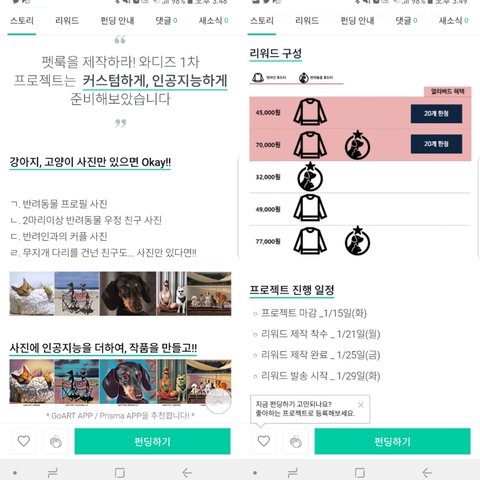 와디즈 사이트에서 "반려동물과 함께입는, 세상에 하나뿐인 커스텀 티셔츠"를 찾아주세요~~