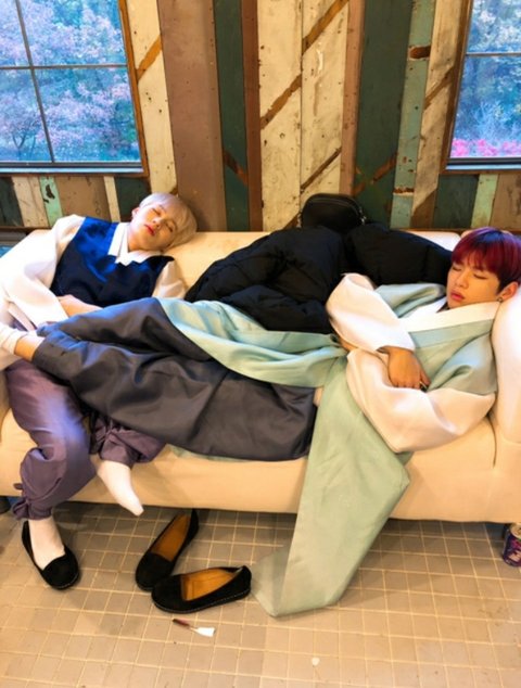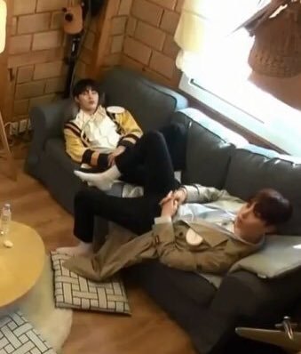 ☁민현이가 자리비워서 다리 뻗음!! (뻗은거임!!! 아무튼 뻗은거임!)