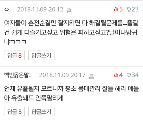 제일 사랑하고 믿는 남자친구랑 스킨십을 하면서도 혹시 그사람이 날 찍고있을까 걱정해야 되는 나라에서 남자혐오하면 근거도 없이 무조건 남혐하는 페미 취급받는게 정상이야?