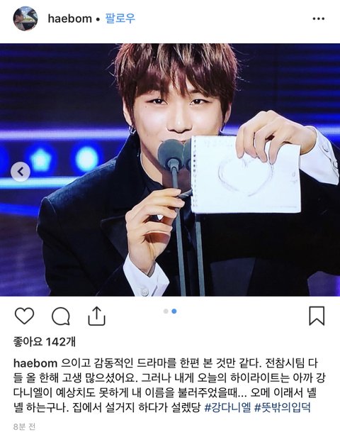 강다니엘 신인상 차룽이들도 축하하는중