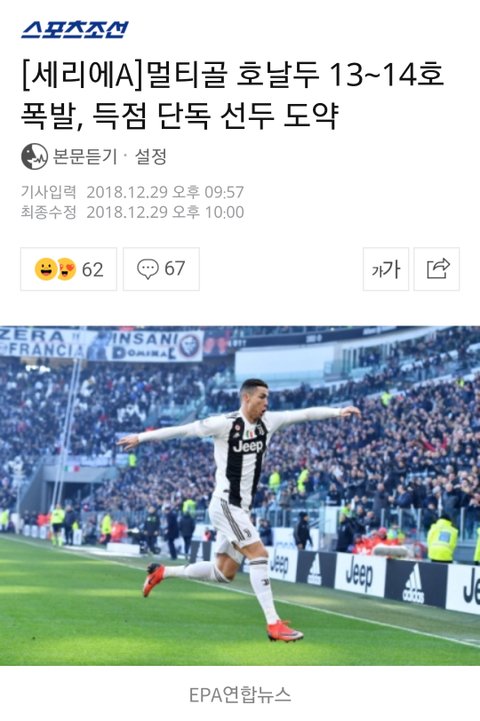 조금전에 ‘리그 1위’로 올라선 호날두의 기사를 보면서 다시 한 번 내가 옳다는 것을 느낄 수 있었다.