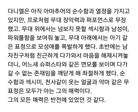 다니엘 연예대상에서 하트 보여주면서 웃는거 보고 예전에 인상적이어서 저장해놨던 글이 생각났어ㅋ