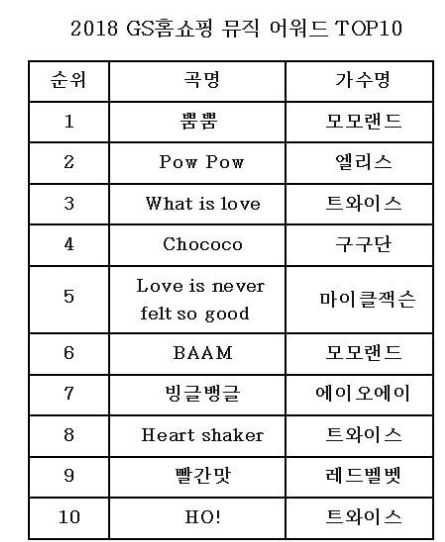 2018 GS 홈쇼핑 뮤직어워드 TOP10