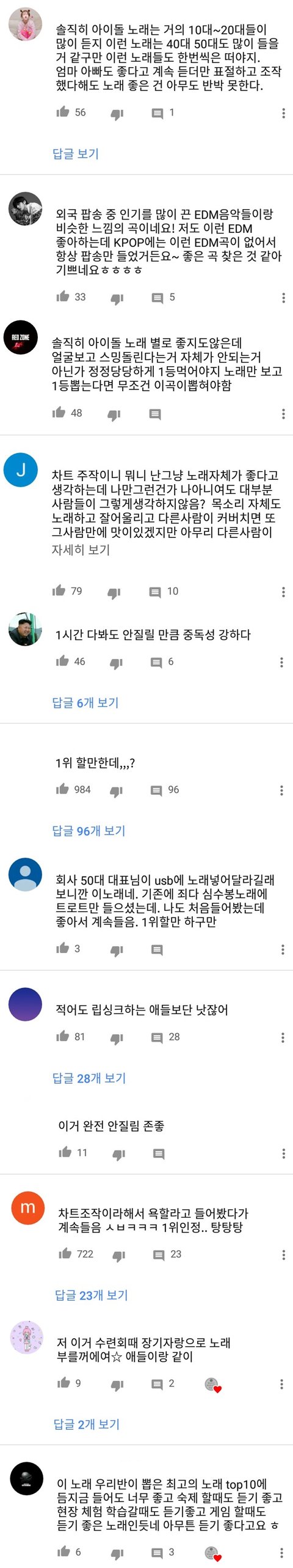 일반 대중은 욕하기는 커녕 이런 명곡이 1위하는게 더 좋다고 좋아하는중