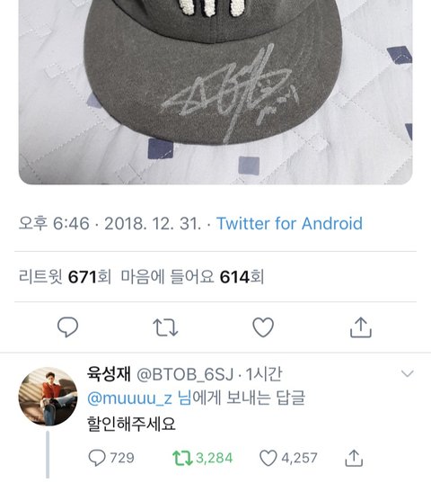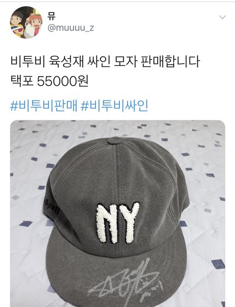 육성재 싸인 모자를 5만 5천원에 판다는 글 짹에 올라았는데 육성재가