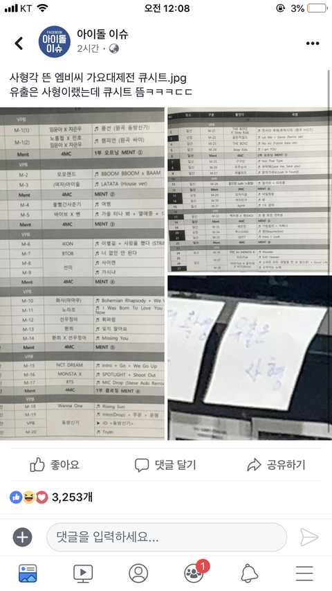 소속사가 캡인 가수가 엔딩 하는거 겠죠,,, 그리고 굳이 큐시트 기사에 방탄 머리채 잡는 이유는?!? 아미 댓글이 굳이 찾아와서 시비털고 가는 이유는? ㅋㅋㅋㅋㅋㅋㅌㅋㅋ 이건 에리들이 봐도 할 말 없는거 아니냐?