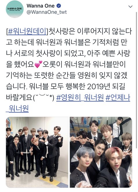2019 1월 1일에 올라온 워너원 공트문구가 너무 이쁘기도하고 이제 진짜 그룹이 끝난다는게 실감이 나서 싱숭생숭한 기분으로 글 써본다ㅇㅇ
