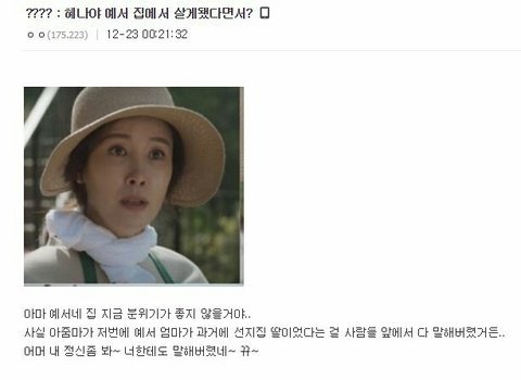 나는 스카이 캐슬 볼 때 이수임이 남의 불행가지고 허락도 안받고 책 쓰는 것도 별로고 자꾸 쎈척하는 것 같고 오지랍 부리는거 같고 자기도 욱해서 한서진 비밀 말해버리고 지 혼자 착한척하고 정의로운 척 하는것 같에서 맘에 안듬....그리고 거기 가족은 또 왜이리 오글거리는지ㅋㅋ 나만 그래??
