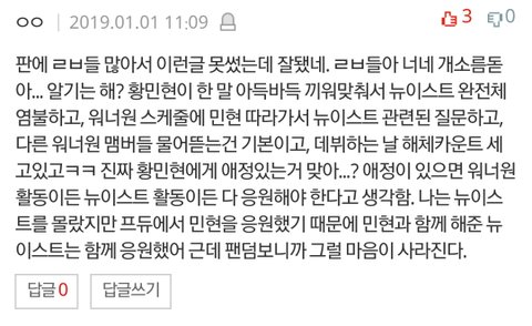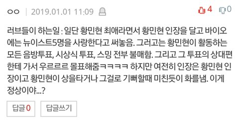 이거 말고도 황민현&다른워너원멤버 투샷 움짤 보정 있으면 거기에 비계멘션 100개넘게 달아서 삭제시키고,