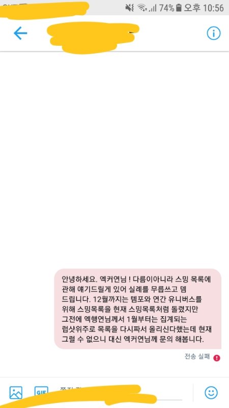 ㅇㅋㅇ한테 뎀 안보내진다 ㅠㅠ나만 그러냐.... 보내지는 애들있으면 대신 이렇게 좀 보내줄사람 ㅠㅠㅠ