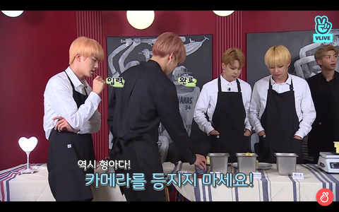 요리 재료 정하는 중에 정국이가 등 돌리고 고민하고 있으니까 석진이가 입에 저거 파스타 면 물고 진지한 표정으로 겁나 까리하게 등 돌리고 있지 말라고함 ㅠㅠㅠㅠㅠ 그리고 다시 계속 고민하고....하 뭔 포인트에서 치이는지 다들 아는 거지...?