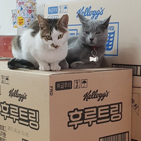 우리 창고에 1년전 뜬금없이 들어와 지금까지 외출냥이로 살고 잇는 두넘.
