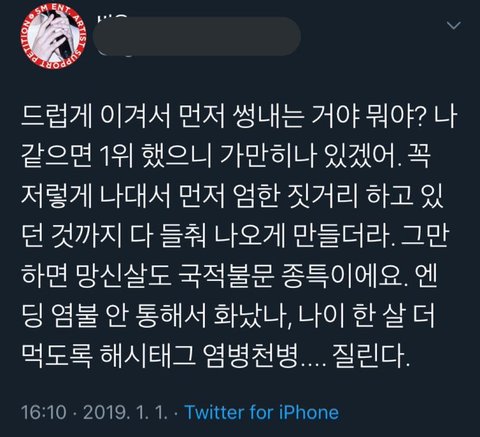 어떡하냐 +딱 4글자 썼는데 톡선 무엇..ㅋㅋㅋㅋㅋㅋㅋㅋㅋㅋㅋㅋㅋㅋㅋ 암튼 그 팬덤은 빨리 반성하고 사과문이라도 올리시길..ㅋㅋ