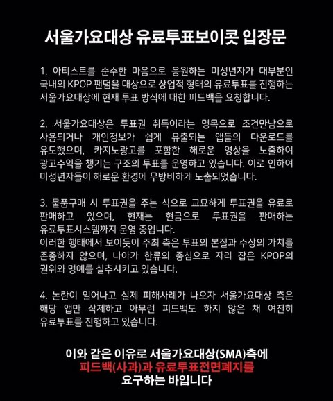 유료투표 보이콧 하는 우리팬덤 짱 ^^