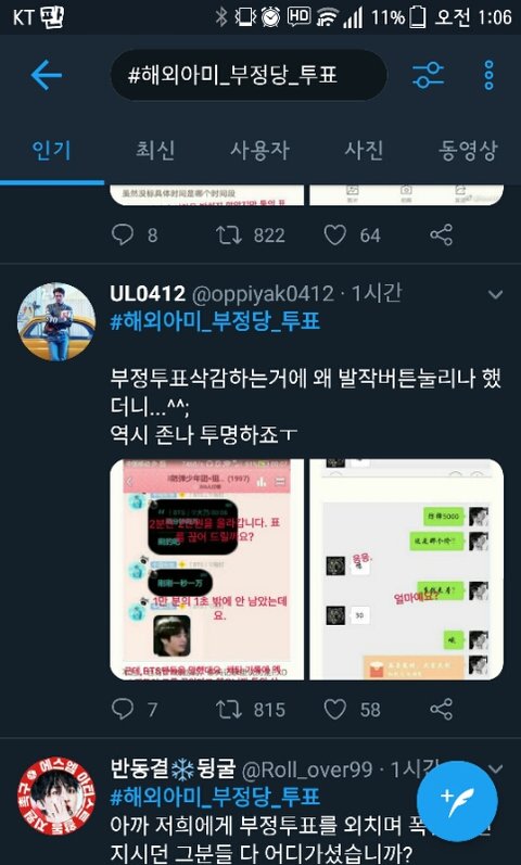 지금 엑소엘들 조작된 걸지도 모르는 메세지 캡쳐짤 하나랑 단순한 투표 추이 증가량 짤을 증거랍시고 들고 와서 해외아미 부정투표 해명하라는 실트 올리는중ㅋㅋㅋㅋㅋㄱㅋㅋㄱㄲㅋㅋㅋ