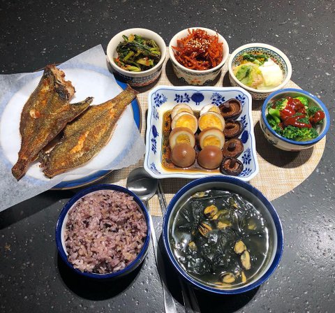 홍합미역국 가자미구이 계란장조림 데친브로콜리