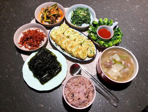 소고기무국 부추계란말이 쪽파말이 시금치무침