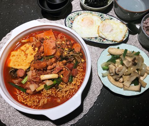 부대찌개 버섯볶음 계란후라이
