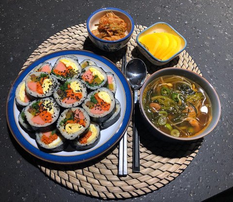 핑크소세지김밥 아욱콩나물국