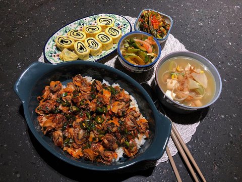 꼬막비빔밥 황태무국 김계란말이