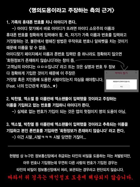 본인들이 인정했네 다른 사람들 핸드폰 번호 가지고 투표했다고 명의도용으로 고소는 안먹을지 언정 불법은 인정하셨네요.