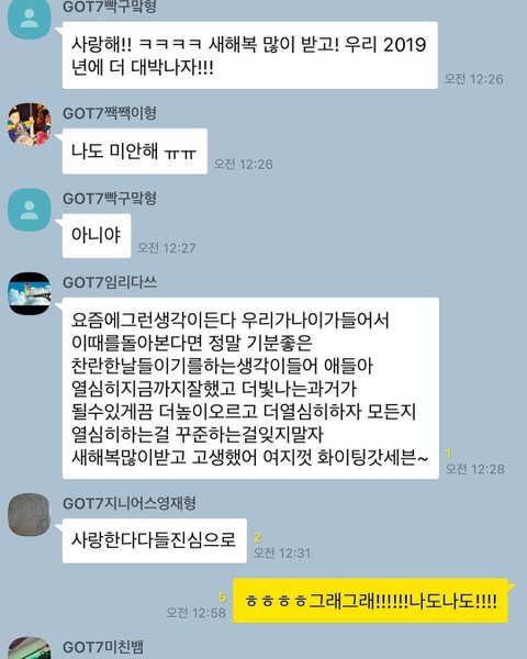 잘나가는 그룹들 보면 다 멤버들끼리 친하고 착해 보임 타팬이지만 갓세븐 넘 호감이야 2019년도 파이팅!!!