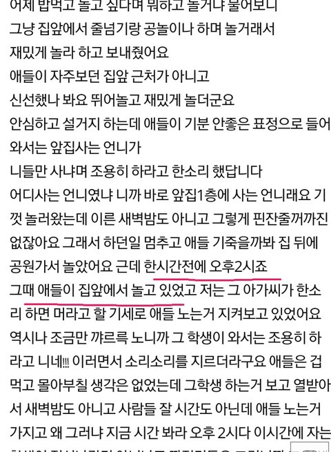 어디사는 언니였냐 니까 바로 앞집1층에 사는 언니래요 기껏 놀러왔는데 이른 새벽밤도 아니고 그렇게 핀잔줄꺼까진 없잖아요 그래서 하던일 멈추고 애들 기죽을까봐 집 뒤에 공원가서 놀았어요 근데 한시간전에 오후2시죠