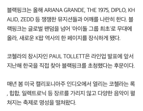 코첼라 창시자가 한국와서 직접 초청 제니 블핑 다 쩌네