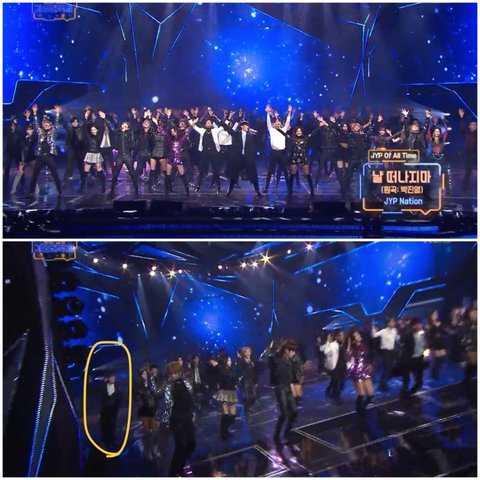 같은날 jyp 소속 연예인들 단체무대중