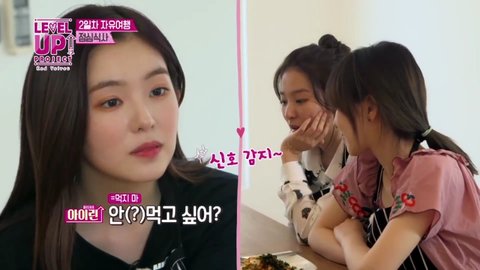 아이린은 흥정을 위해 슬기에게 안 먹고 싶어? 라고 물음. (슬기는 배부르긴 하다고 함)