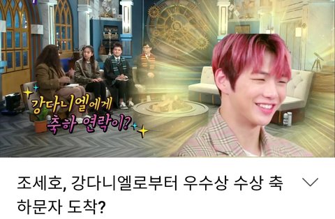 해투언급) 조 세 호, 강다니엘로부터 우수상 수상 축하문자 도착?