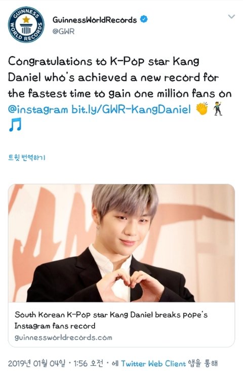 https://twitter.com/GWR/status/1080870619141603328 강다니엘 축하해❤❤❤ #강다니엘_기네스