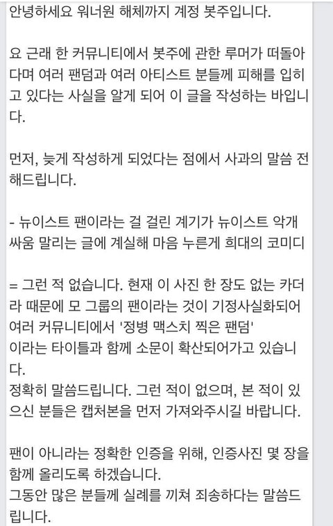해체봇 뉴이스트팬 아니냐는 논란에 해명하던 계정주