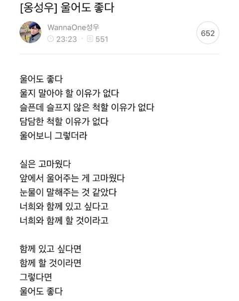 성우 글 너무 뭉클ㅜㅜ