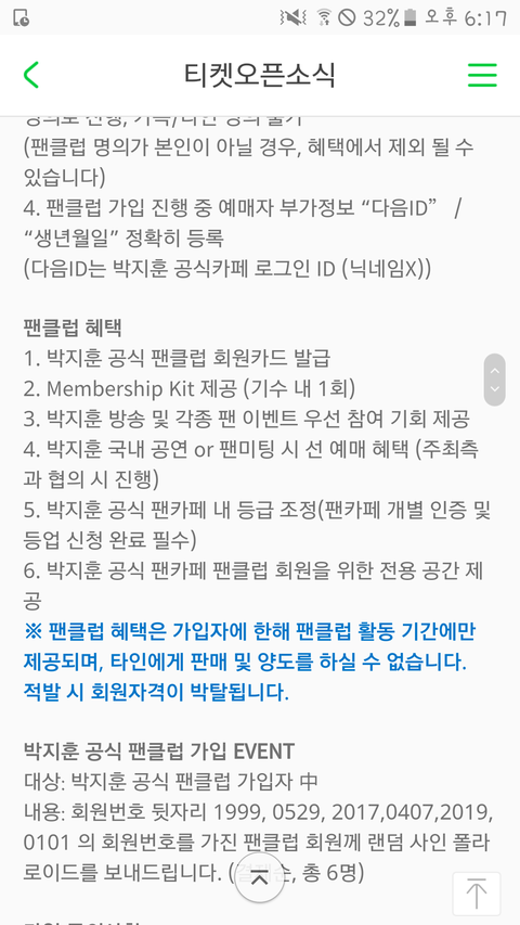 박지훈 공식팬클럽 신청 떴네