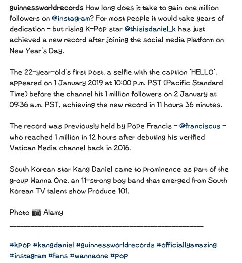 bbc에도 강다니엘 인별 최단기간백만팔로워 기사올라옴