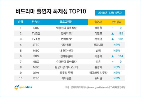 12월 4주차 비드라마 화제성 순위 4위 아이돌룸 강다니엘