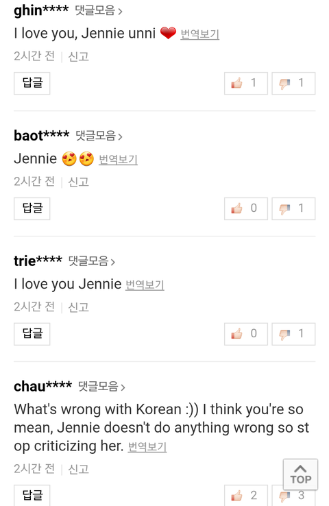 막말로 네이버만 그러면 가만히 있으려고 했는데 판에 있는 제니 글들 보니깐 뭐 트퀴니 뭐니 하는 글들이 너무 많고 추천도 막 찍혀있음