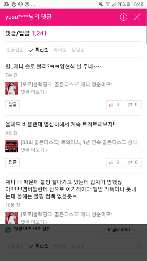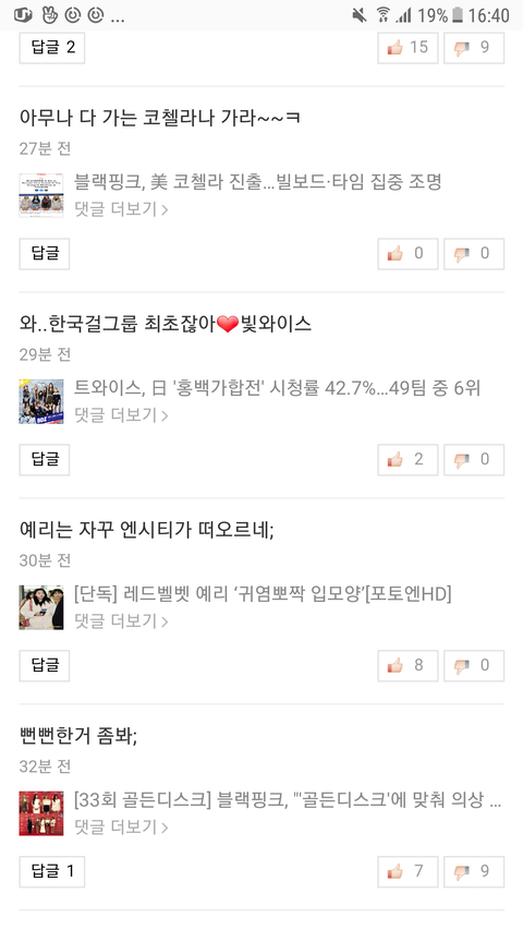 블랙핑크랑 제니 기사댓글에 악플단 트와이스팬 박제. 레드벨벳 예리에게도 악플단게 박제됨.