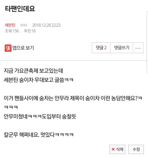 지난번에 가요큰축제때 숨이차 첨보고 요기다 글남겻엇는데요