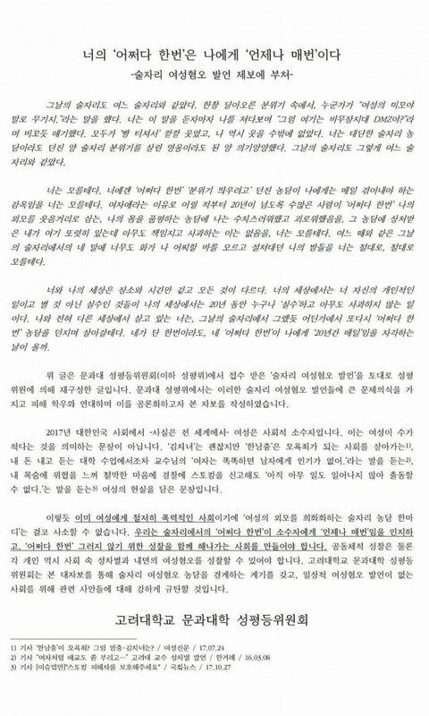 그런데 문과대 내에선 여혐이나 성희롱도 성적 폭행이니 성폭행이다는 논리를 만듭니다.