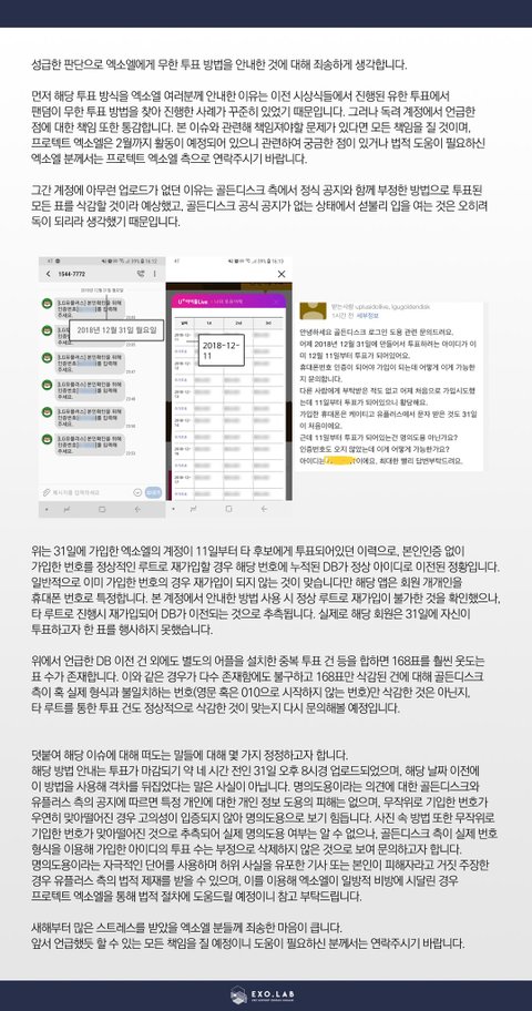 아니 그래 정상적인 방법으로 당당하고 떳떳하게 투표한 저쪽 팬분들도 분명 있겠지 그런 팬들한테 죄송하다는걸로 백번 양보해서 생각해봐도..ㅋㅋㅋㅋ