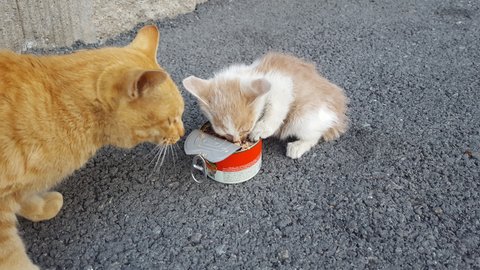 길고양이 밥주니깐 새끼가 엄마 밀어내고 혼자먹네요