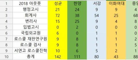 서강 성균 한양 이화여대 중앙 2018 아웃풋